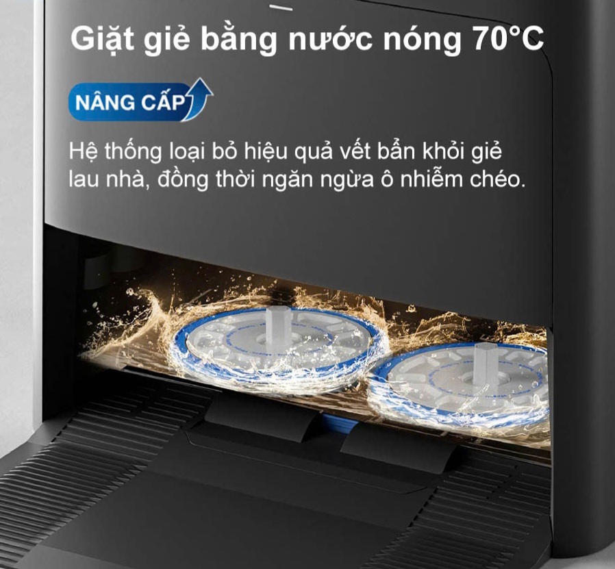 - Robot sẽ tự động đổ rác, giặt giẻ bằng nước nóng 70 độ